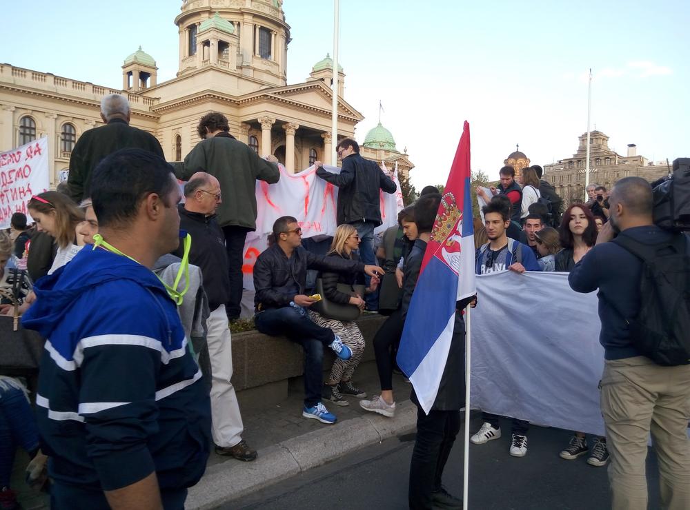18:02 - Nezadovoljni građani, uglavnom studenti okupili su se na platou ispred Skupštine Srbije.