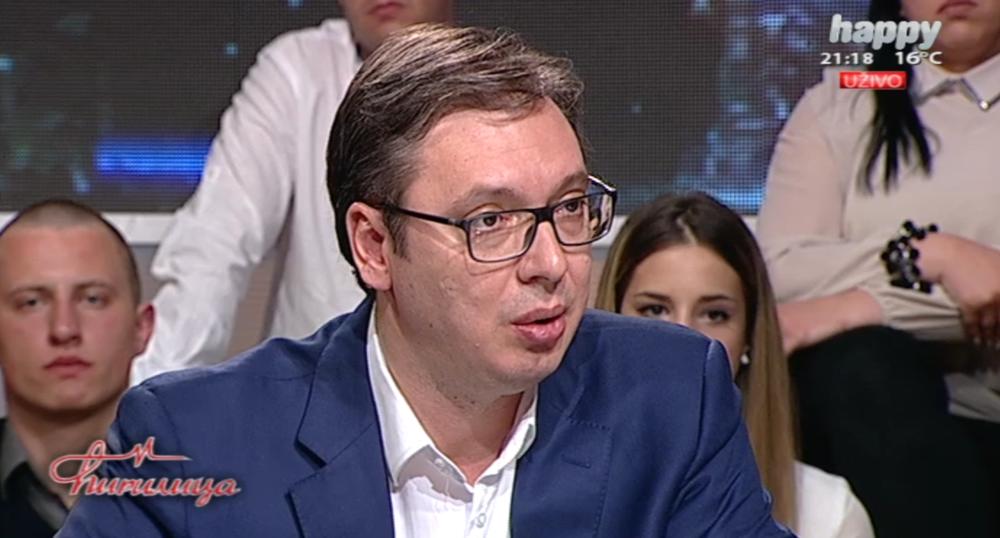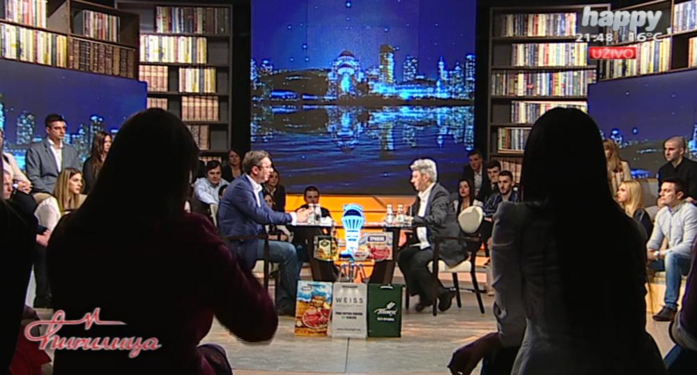 Kazao je da je opozicija šokirana rezultatima. - Neki koji su dobili 5 posto, mislili su da će imati najmanje 20 – kazao je on. On je kazao i da nema sumnje da opozicija stoji iza protesta. - Oni hoće da ukinu demokratiju. Valjda ima ko da smenjuje, oni hoće da ukinu institucije. Tek večeras smo došli do suštine, a to je smeniti Vučića – kazao je Vučić. Dodao je da je večeras najmanji protest od početka i da se okupilo jedva oko 2.000 ljudi. Osvrnuo se i na moto „Onesvesti se“ koji je nastao kao aluzija na dečka koji se onesvestio u istoj emisiji, noć pre izborne tišine. - Večeras sam pitao ko će da se onesvesti, kazao je on u šali. Dodao je da u odborima ne sede samo ljudi iz SNS, da svaki zapisnik potpisuju predstavnici svih kandidata, aludirajući „na snimke koje večeras objavljuju na društvenim mrežama“. Da podsetimo, večeras se na Tviteru pojavio snimak na kom dva lica u kutiju ubacuju pregršt biračkih listića sa zaokruženim brojem 6, brojem upravo Aleksandra Vučića. - Ne možete vi da ubacite u praznu kutiju šta hoćete. Mora da vam se broj upisanih u spisak poklopi sa brojem listića. Poništili smo biračka mesta na kojima se i jedan listić, koji je možda neko izneo, nije poklopio. Svi potpisujemo zapisnik, to je instrument kojim pokazujete je li nešto ispravno ili ne – objasnio je on.