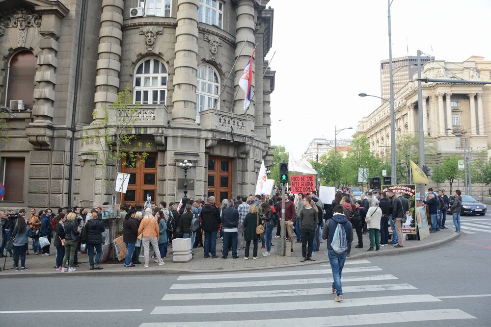 20:05 - Kako javlja naš reporter sa lica mesta, okupljeni dobijaju podršku od građana koji su izašli na prozore da ih pozdrave.