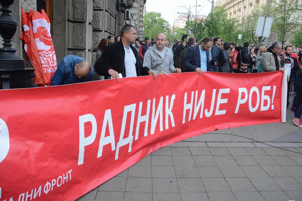 - Radnik FAP Radoš Maljević prošle godine izvršio je samoubistvo jer je snimao krađu alata. Trpeo je pritiske. Pošteno radničko dete ne može da dobije posao. Posao dobijaju činovnici, oni koji lepe plakate. Pošteni radnici sede na birou. Svaka šuša dobije 15-20 hiljada evra za radna mesta. A ti građani plaćaju razne bitange iz Južne Koreje i Kine koji maltretiraju radnike. Ne želimo da radnik u Srbiji bude rob. Videli smo šta je izborna krađa. Čovek koji je to snimio je uhapšen. Naš kolega predsednik sindikata dobio je poziv na informativni razgvor u policiju jer se bori za plate. Deca se bore za babe i dede, koji glasaju za Vučića, a njihovi roditelji sede kući. Boriću se za sve vas neću da niko u Srbiji bude rob. Neću da građani i deca budu robovi. Mi nećemo da ti robovi budu u Srbiji. Predsednik sindikata Sloga u Trajal Kruševac Vladica Tomašević dobio je otkaz jer pozvao na proteste - rekao je on.