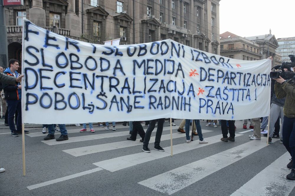 Na velikom transparnetu napisani su i zahtevi studenata..