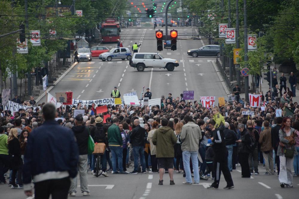 19:51 - Demonstranti su stigli do Vukovog spomenika, a saobraćaj je gotovo u potpunosti zatvoren.