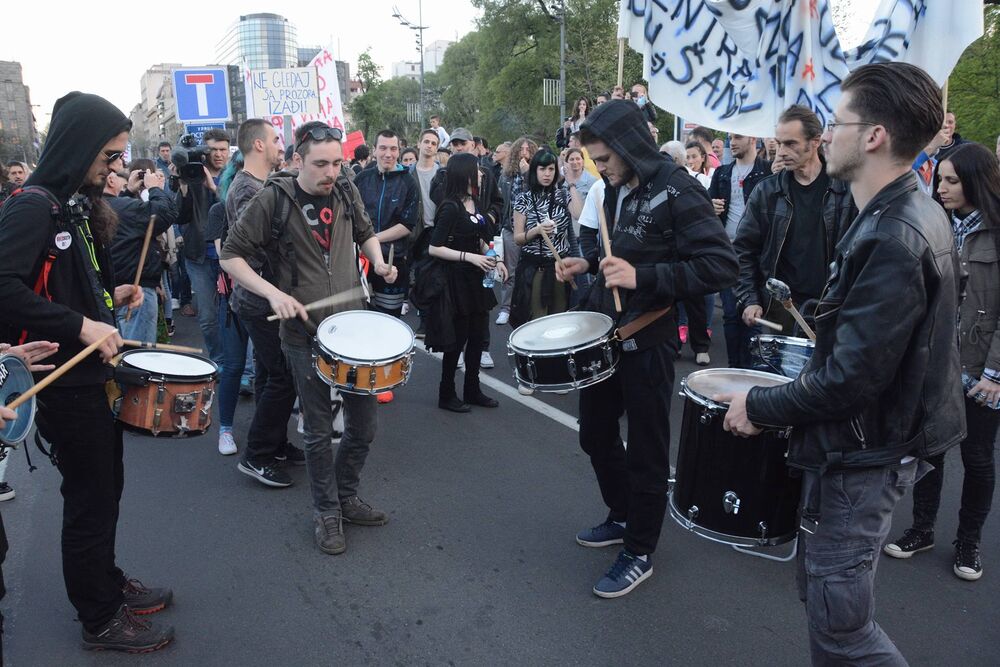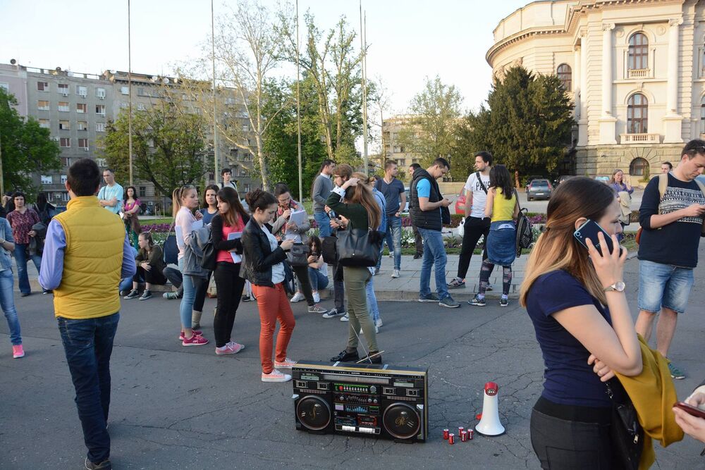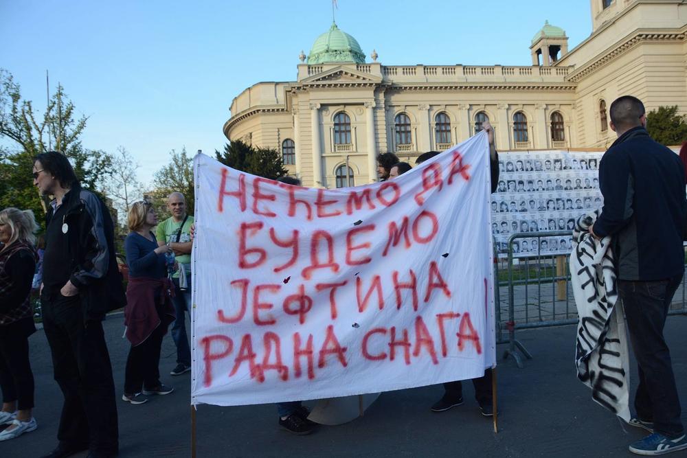 Iako je jučerašnji protest završen tako što je sa megafona poručeno da će zbog uskršnjih praznika, protesti biti nastavljeni u utorak, 18. aprila, u 18 sati, plato isped Narodne skupštine i danas je mesto okupljanja demonstarnata.