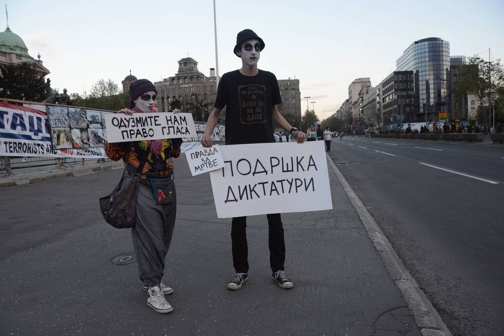 Građani šetajući ulicama traže ostavke državnog vrha, smene odgovornih za nepravilnosti na predsedničkim izborima i promene uredništva Javnog servisa Srbije.