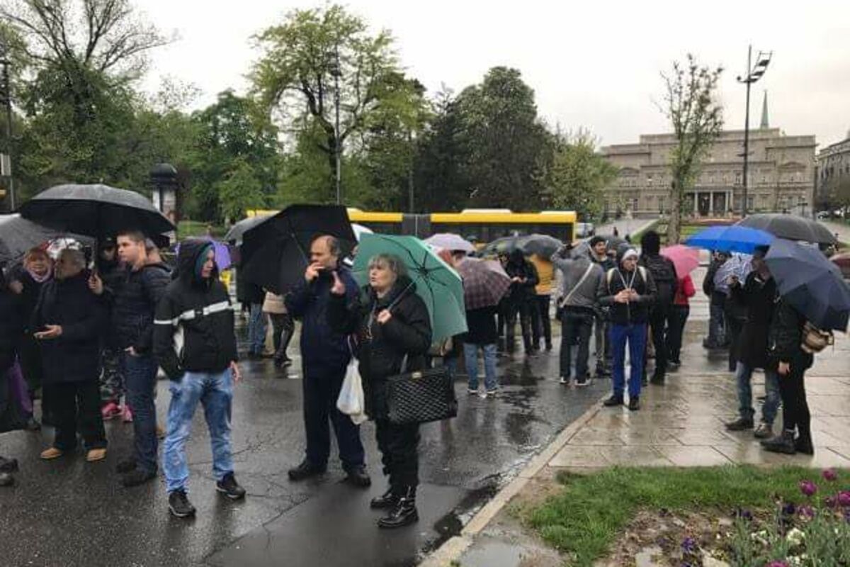 Pale su i teške reči između demonstranata i lidera SRS, dok je automobilom, sa otvorenim prozorom, prolazio pored građana.