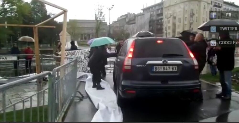 Neki od poslanika sinoć su otišli na drugi izlaz Skupštine, ali ne i Šešelj, koji je želeo da prođe kroz proteste. Međutim, ovaj potez lidera radikala nije prošao nezapaženo. Jedna žena prišla je automobilu u kojem je bio, počela da viče, vređa Šešelja i udara auto.