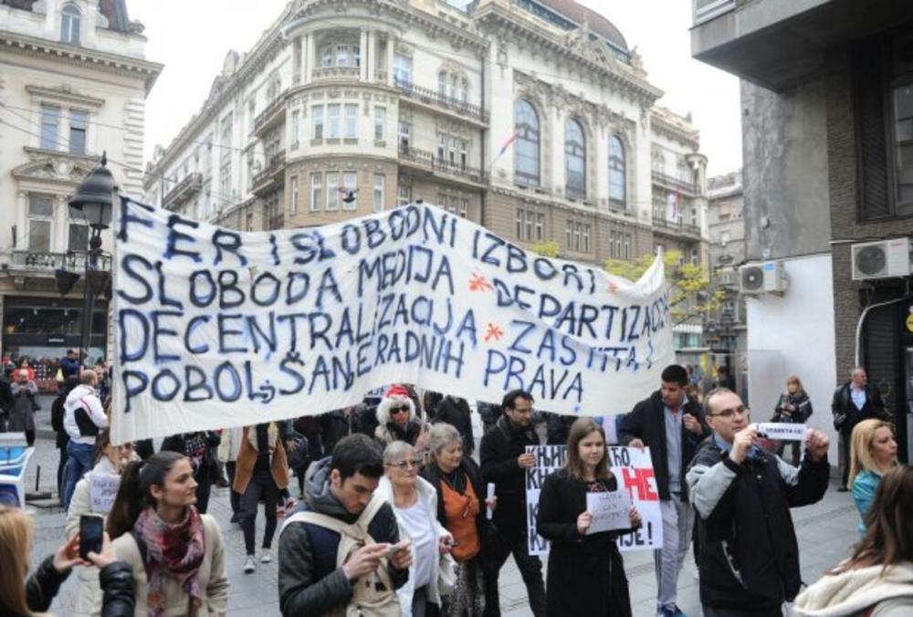 17.45 - Protestna kolona je krenula od zgrade SANU ka Skupštini Srbije.