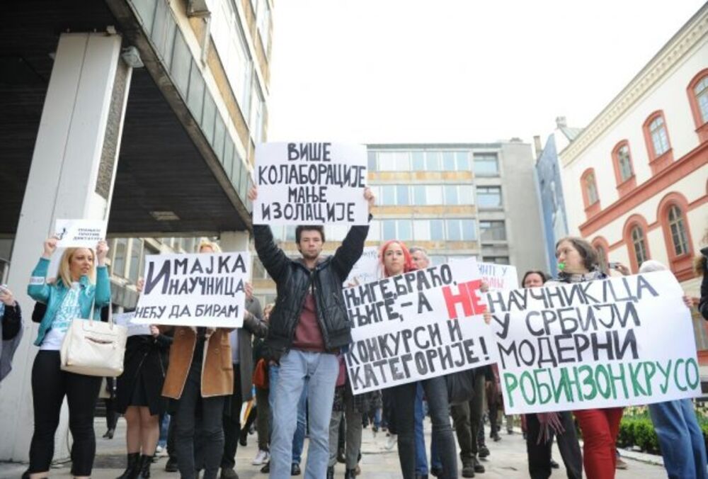 18.30 - Demonstranti su stigli do krunske ulice, gde će se zaustaviti kod Muzeja Nikole Tesle. Naučnica Milena Repajić, poručila je da u Srbiji nema nade za nauku dok nam politiku vode ljudi sa plagiranim diplomama. "Drago nam je sto su studenti stali uz naučnike. Cilj nam je da politici i političarima skrenemo pažnju da moraju da obrate pažnju na nauku kada donose odluke. Nauka u Srbiju je u mnogo gorem problemu nego nauka u svetu - izdavanja za nauku su najniža u Evropi i regionu. Nećemo da budemo jeftina radna snaga, hoćemo da se pitamo o nauci u Srbiji i da sprečimo da nam najbolji studenti odlaze iz zemlje", poručila je ona, što su okupljeni ispratili skandiranjem "nećemo napolje" i pamet u glavu." Kolona je krenula ka zgradi Ministarstva prosvete, nauke i tehnike u Nemanjinoj ulici