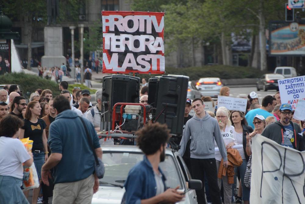 Učesnici protesta traže fer i slobodne izbore, smenjivanje članova Republičke izborne komisije i Regulatornog tela za elektronske medije, slobodu medija, kao i smenjivanje političke elite.