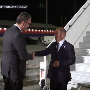 Nemačkog kancelara Šolca sinoć je na aerodromu "Nikola Tesla" u Beogradu dočekao predsednik Vučić, koji je naveo da tokom današnjih razgovora očekuje dogovore koji će predstavljati prekretnicu za Srbiju na njenom putu još bržeg ekonomskog rasta.