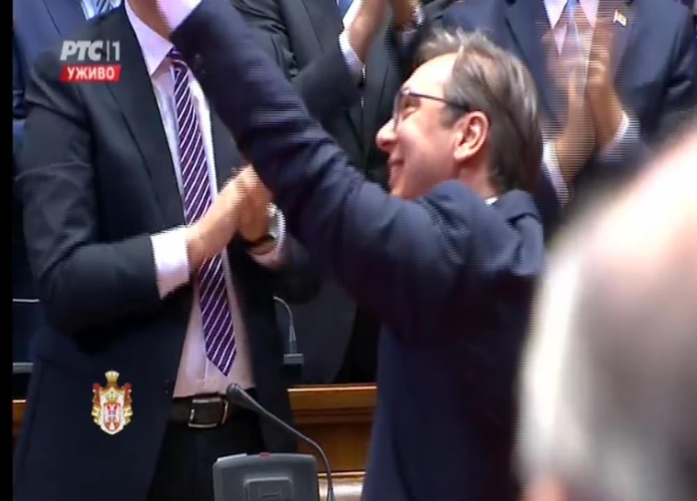 12:00 Tačno u podne Aleksandar Vučić je stigao na sednicu Skupštine. Prvo je ušao odlazeći predsednik Nikolić, a potom i Vučić koji se srdačno pozdravio naročito sa Miloradom Dodikom.