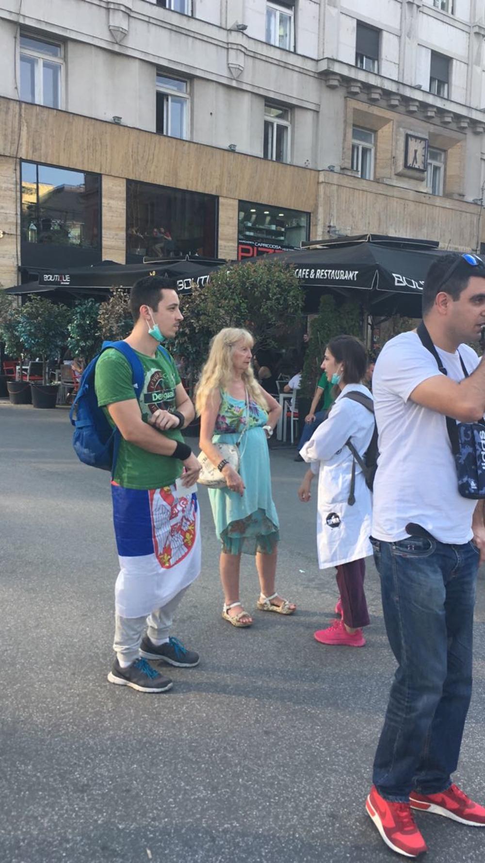 19.20 - Pored kolone se kreće nekolicina ljudi koji provociraju učesnike protesta i dobacuju im.