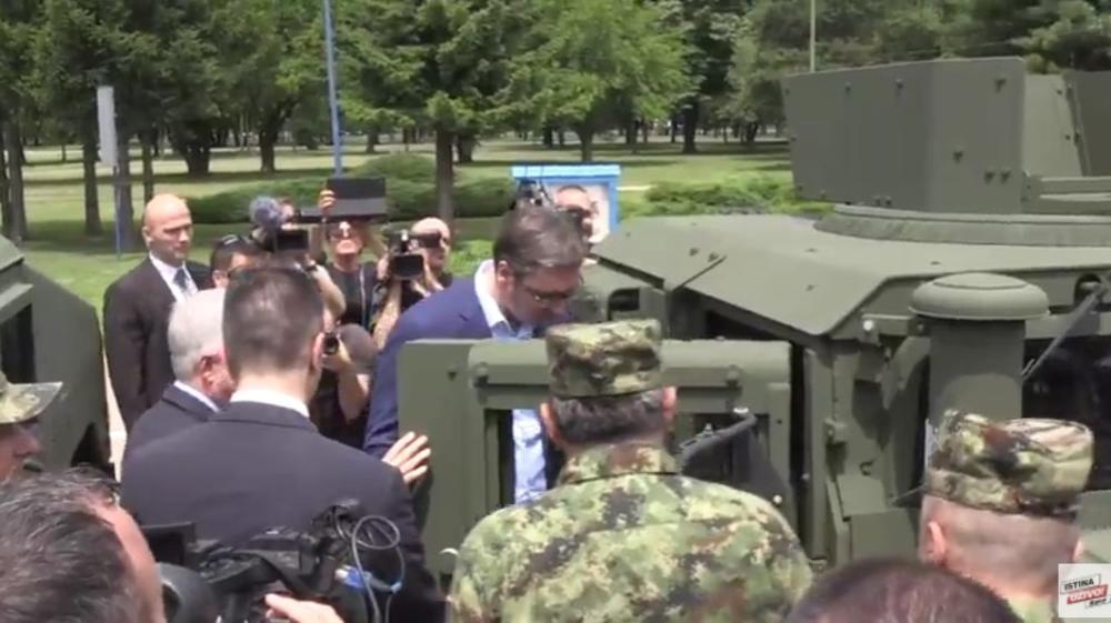 Predsednik Srbije Aleksandar Vučić danas je prisustvovao primopredaji 19 vozila "hamvi" u kasarni "Narodni heroj Stevica Jovanović" u Pančevu