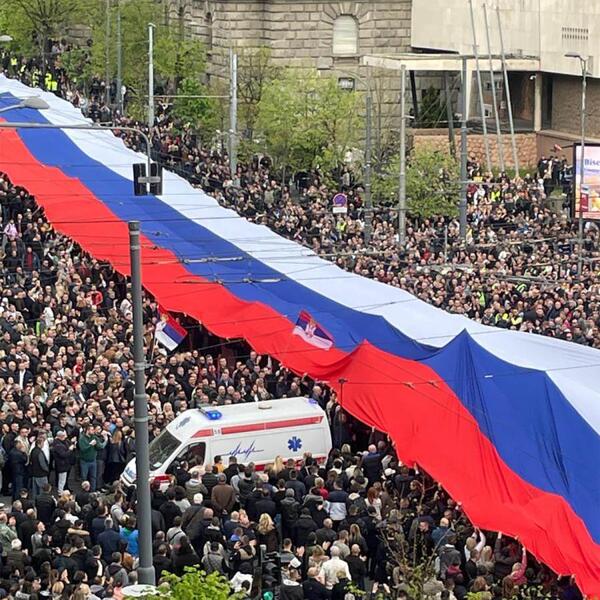 "Danas imam čast koju rečima teško mogu da opišem – zajedno sa svojim narodom, rame uz rame sa ljudima iz svih krajeva Srbije, nosim najveću zastavu Republike Srbije u našoj istoriji. Dugačka 200 metara, ponosno se vijori ulicama Beograda. Ova zastava nije samo simbol – ona je, baš kao i KiM, srce Srbije. Svaki njen metar govori o našim korenima, o borbi, o ljubavi prema otadžbini.