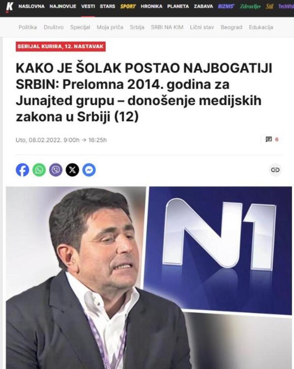 Kupovinom engleskog premijerligaša Sautemptona, Šolak 2022. godine izlazi iz brižljivo građene medijske ilegale koja je trajala decenijama. U toj tački on započinje i intenzivnu kampanju sopstvenog brendiranja kao uspešnog poslovnog čoveka u rangu svetski najpoznatijih imena iz sveta biznisa. Idiličnu sliku kvario je Kurir, a posle i još neki međunarodni istraživački mediji koji su se zainteresovali za sumnjive i raznolike veze srpskog tajkuna. U serijalima posvećenim Šolaku, secirali smo svaki segment njegovog poslovanja i posložili genezu njegovog uspona od prodavca VHS kaseta do prvog srpskog milijardera i vlasnika engleskih "svetaca".