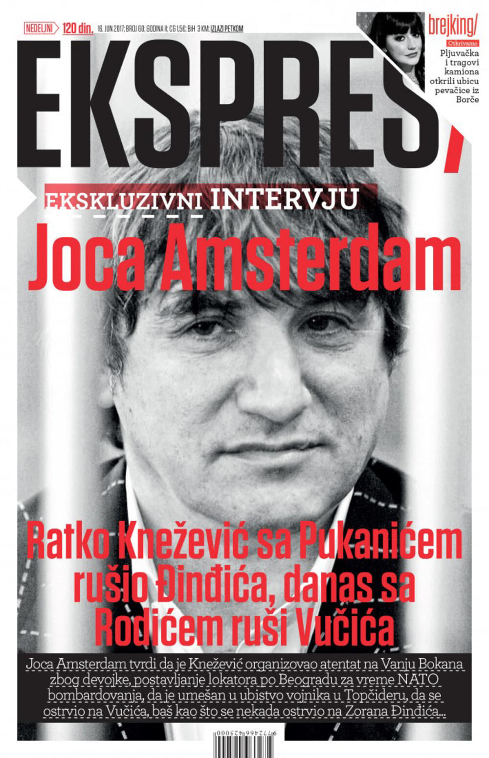 Sreten Jocić, poznatiji kao Joca Amsterdam, osuđenik za ubistvo, izneo je šokantne tvrdnje u intervjuu nedeljniku Ekspres čiji je vlasnik Goran Veselinović, kum predsednika Srbije Aleksandra Vučića, da se sprema ubistvo vlasnika "Adria Medija grupe" i lista "Kurir" Aleksandra Rodića!