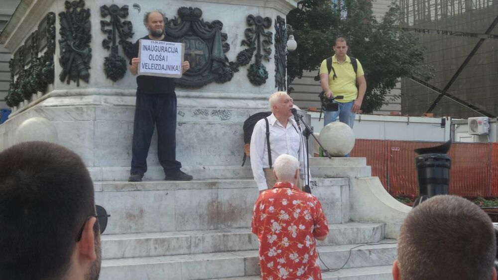 18: 21 - Među okupljenima je i Zoran Živković, lider Nove stranke! Ova farsa karikatura inauguracije, je isto diktatura. Vučić je rekao da je pobedio na izborima, a to je zahvaljujući krađi. Ovde manjina demonstrira, hrabrost, svest. To koliko nas ima su pravi ljudi za današnji dan. Žao mi je što neke naše kolege nisu tu