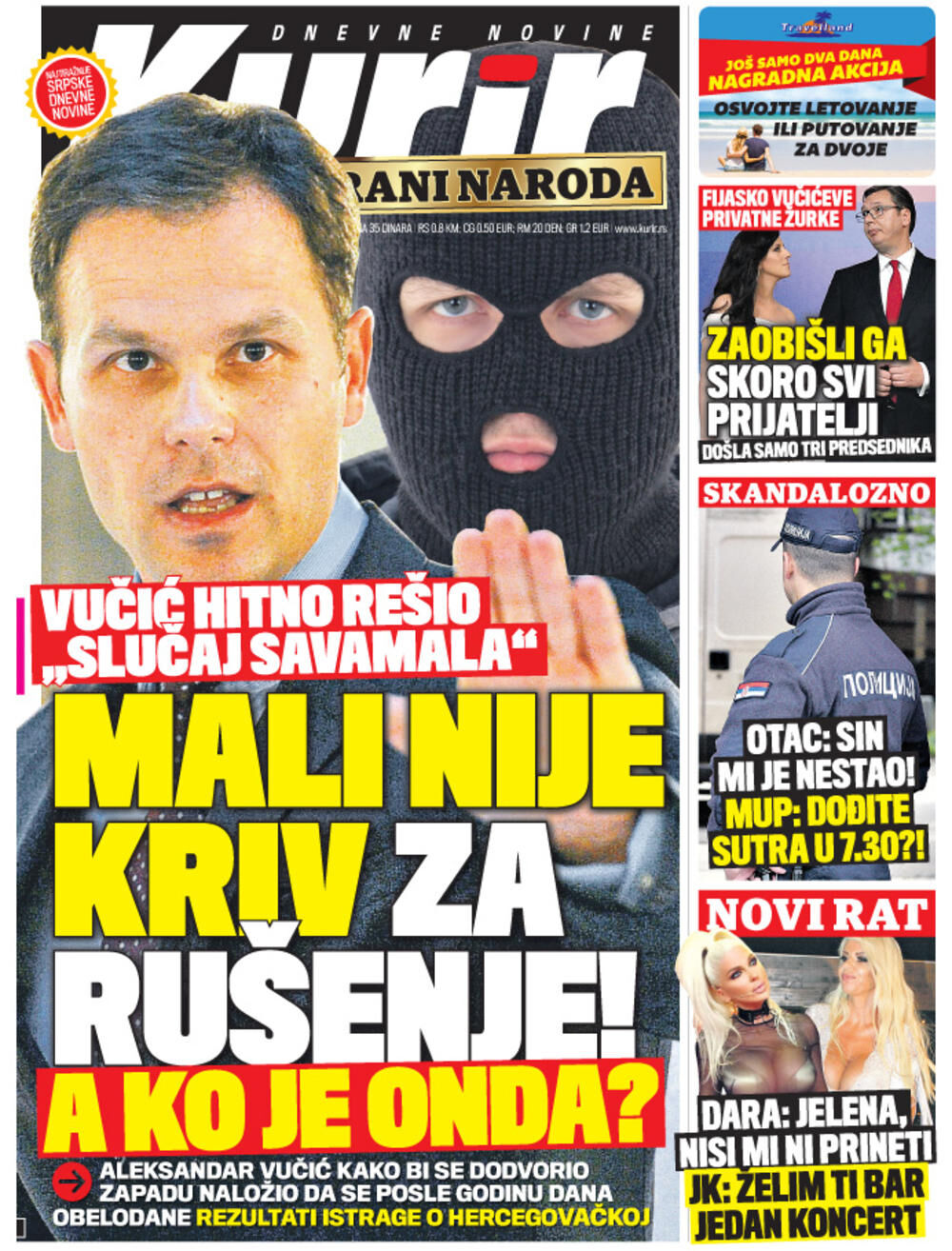 Šta će se dogoditi sa Sinišom Malim, na koji način Vučić očajnički pokušava da povrati podršku zapada, i šta će biti napisano u izveštaju za rušenje u Savamali pročitajte u SUTRAŠNJEM KURIRU.