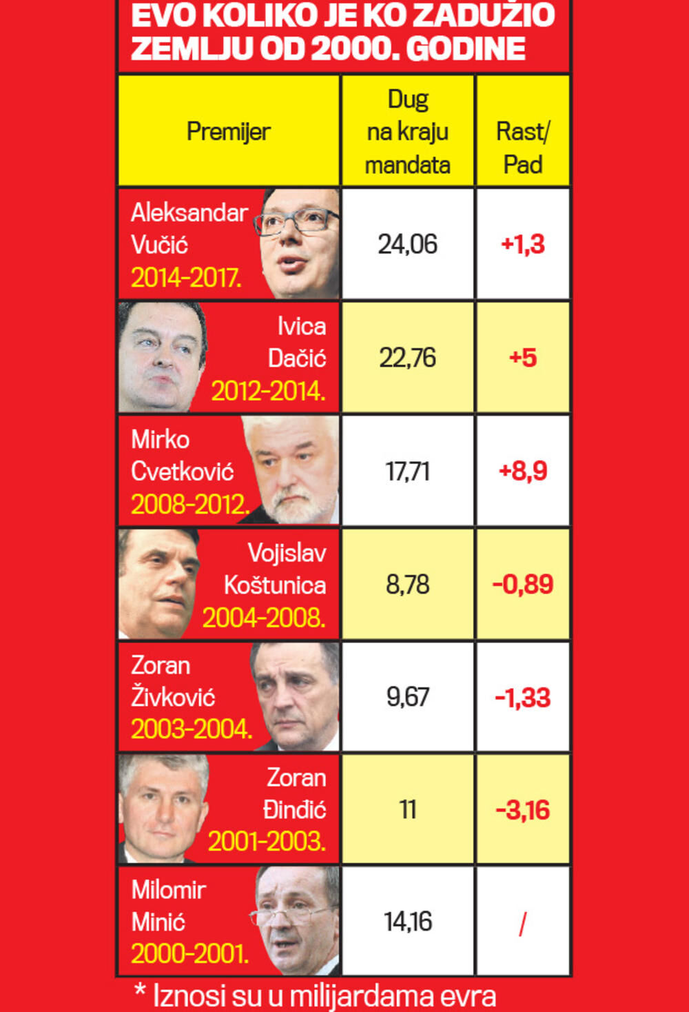 VUČIĆEVA DOSTIGNUĆA: Za pet godina javni dug Srbije veći za 6,3 milijarde evra! (FOTO)