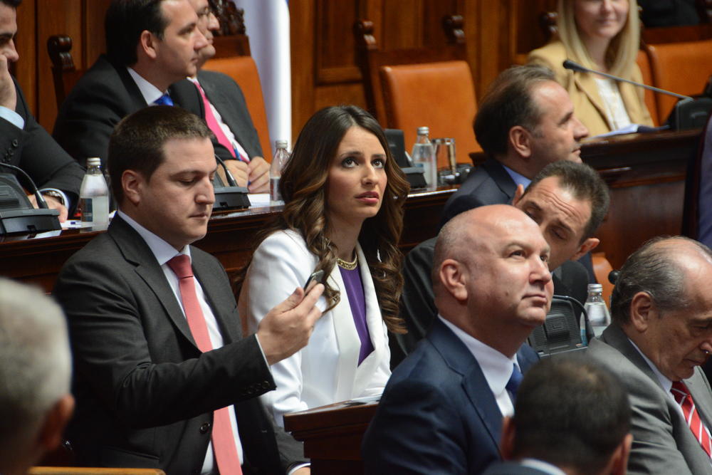 - U politiku sam ušla iz privrede, a iz ljubavi prema Srbiji. Vratila sam se iz najbolje zelje da uradim nesto za svoju zemlju. Ccast je služiti Srbiji, kako bi se ona menjala na bolje" rekla je Brnabić i dobila prvi aplauz poslanika.