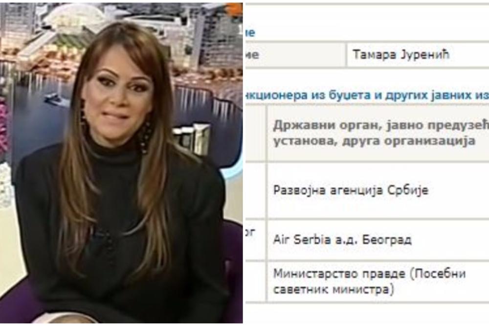 U registru Agencije za borbu protiv korupcije navodi se da je od 25. 12. 2015. Tamara Jurenić posebni savetnik ministra u Ministarstvu pravde i da za ovaj angažman dobija ni manje, ni više nego 107.000 dinara.