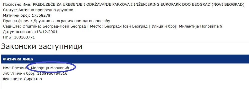 Objavljen je i deo izveštaja nezavisnog revizora o poslovanju kluba Crvena Zvezda, gde se vidi da su nepokretnosti ovog kluba date kao garancija za kredit Markovićevoj firmi "Europark"