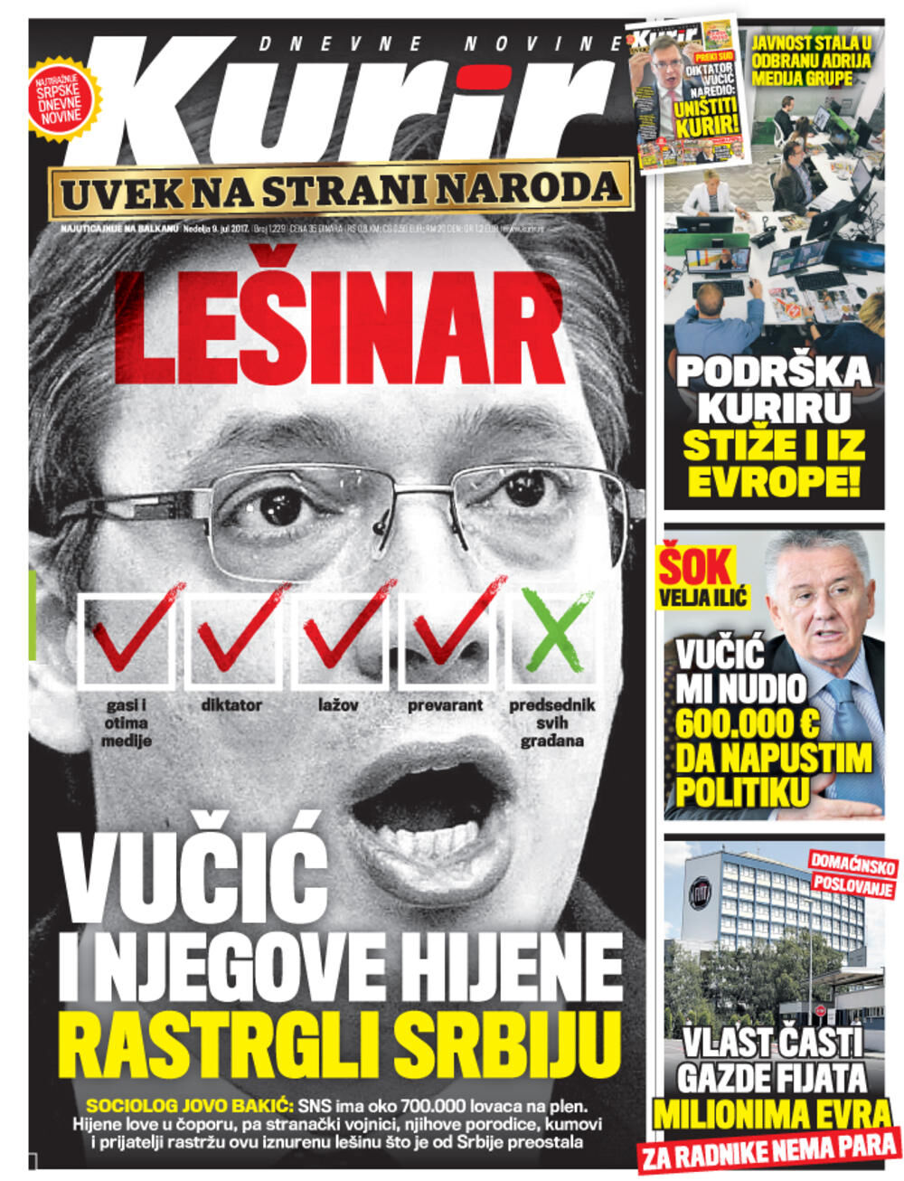 Lider Nove Srbije Velimir Ilić otkriva za Kurir da mu je Aleksandar Vučić, koji je tada bio premijer, nudio 600.000 evra da se povuče iz politike! Ilić nam je ispričao da ga je Vučić ovom nepristojnom ponudom šokirao prošle godine, neposredno pred parlamentarne izbore.