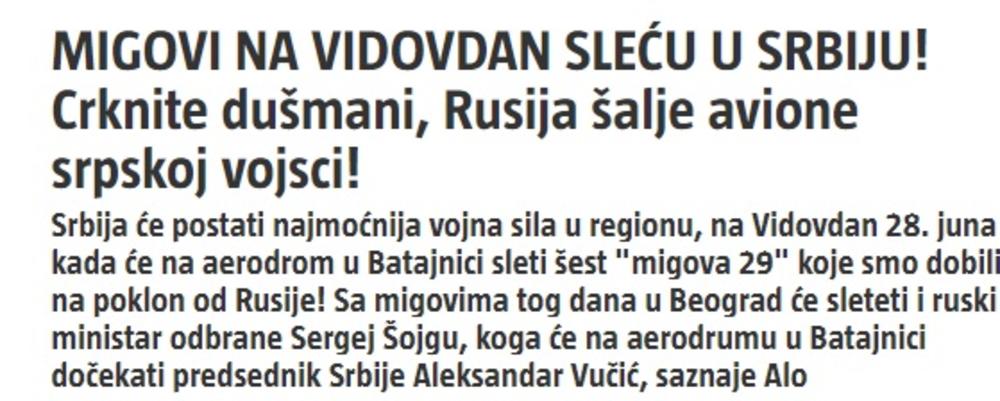 Mediji bliski režimu basnoslovno su najavili da će ruske letilice sleteti na istorijski datum na srpsko tlo, ali, to se još uvek nije desilo. Vidovdan je prošao odavno, ali, eto, kako bi Vulin rekao, potrebno je još samo malo strpljenja.
