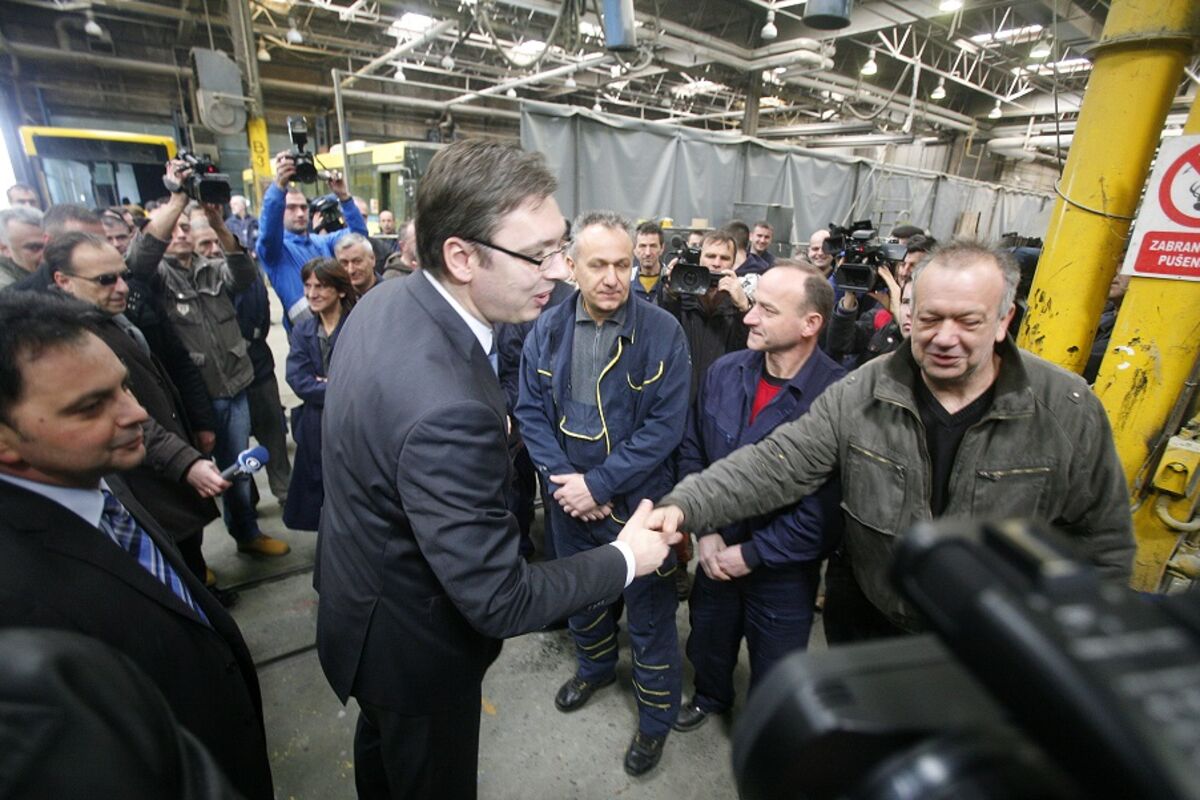 “Goran je malo preterao, pusti 14. i 15. fabriku. Ali nemojte zameriti onima koji malo preteraju, pa kažite posle koliko godina je došla fabrika ovde. I to je redak slučaj u Srbiji, isplaćuju i 13. platu”, kazao je Vučić obraćajući se okupljenima. “Počeli su da kopaju i bazen gde će zaposleni moći da se kupaju. Onoliko koliko su zadovoljni radncii biće i oni. Kad smo postavljali kamen temeljac niko nije verovao, ali dobro, vide obični ljudi, običan narod, nema tu sekiracije”, kazao je on.