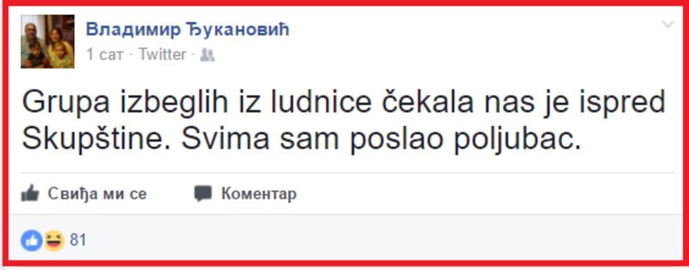 - Grupa izbeglih iz ludnice čekala nas je ispred Skupštine. Svima sam poslao poljubac.