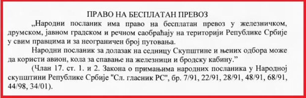 Poslanici, između ostalog mogu da se švrćkaju gde požele, jer su im sve vrste prevoza - potpuno besplatne.