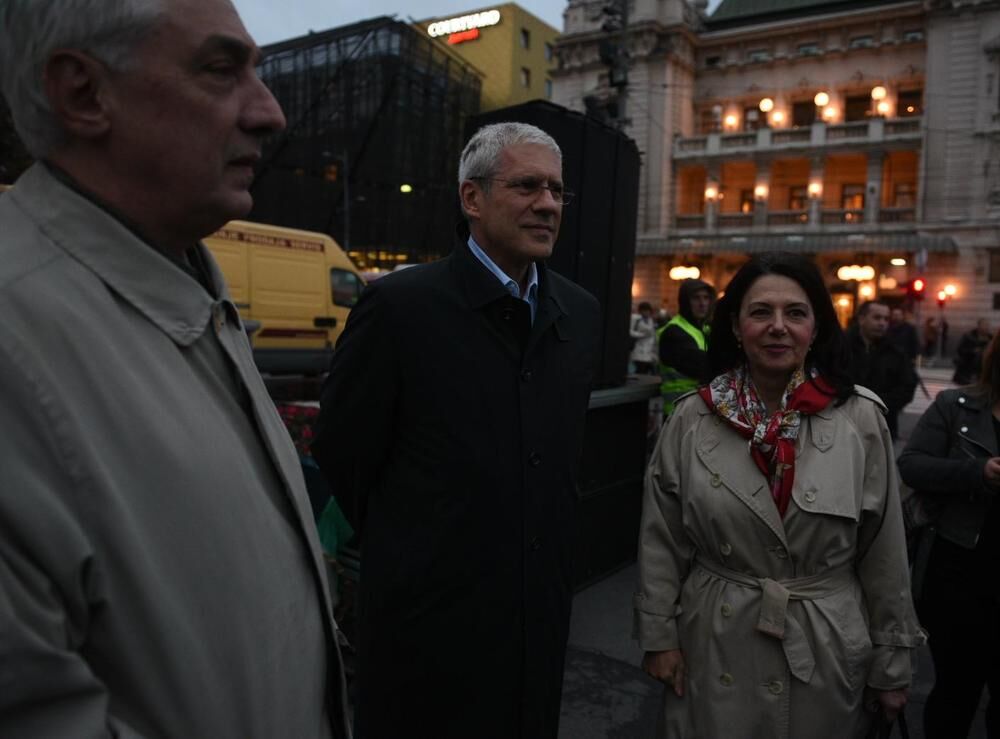 Među prvima su se pojavili Vuk Jeremić, predsednik Socijaldemokratske stranke Boris Tadić i narodna poslanica Sanda Rašković Ivić, kao i član PSG Božo Prelević. Skupu je prisustvovao i legendarni košarkaški trener Dušan Ivković, kao i lider opozicione Levice Srbije Borko Stefanović, odnosno politički analitičar Đorđe Vukadinović.