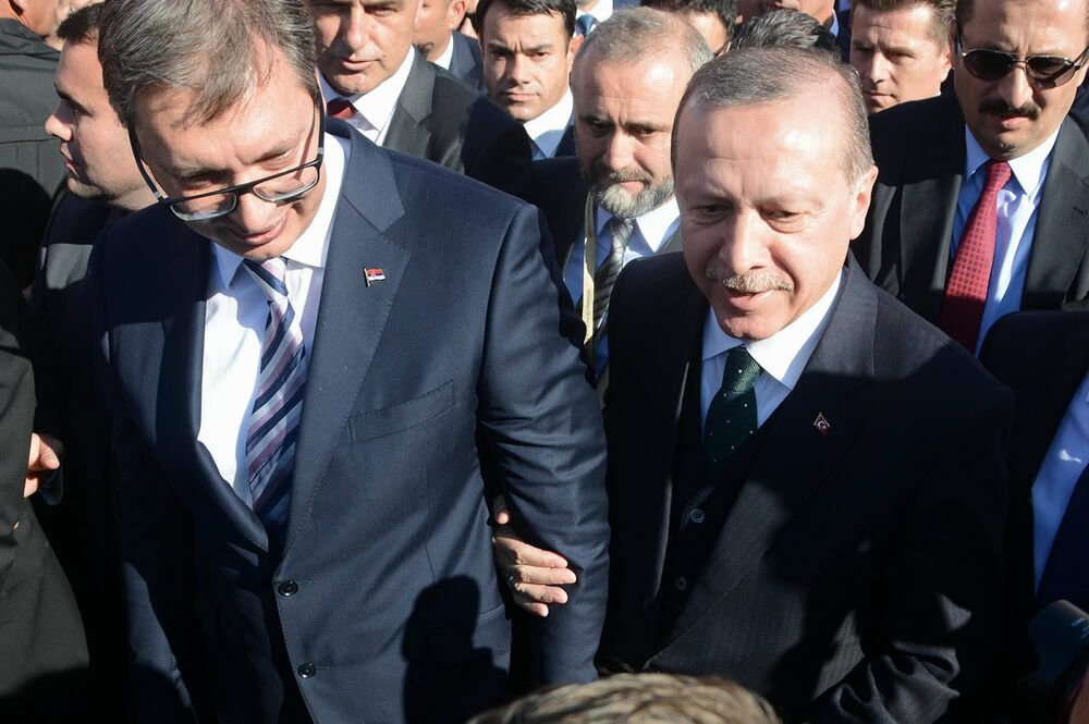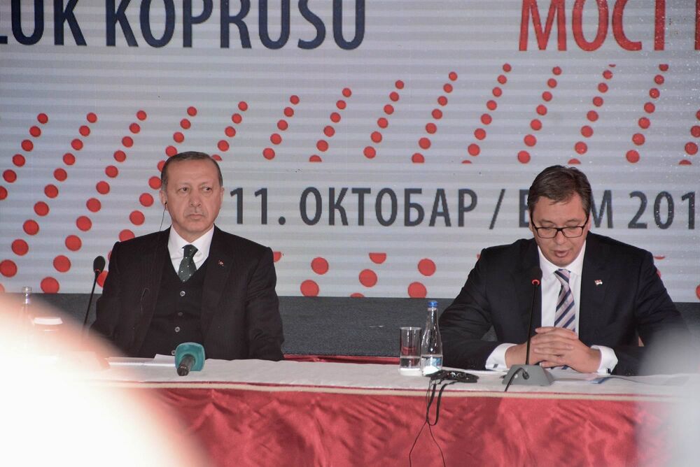 14: 00 - Srpski predsednik Aleksandar Vučić i predsednik Turske Redžep Erdogan izašli su na binu sa koje se obraćaju okupljenima.