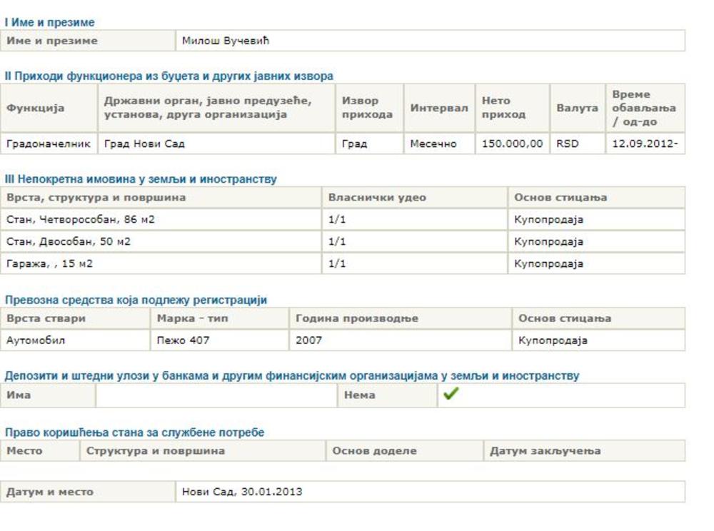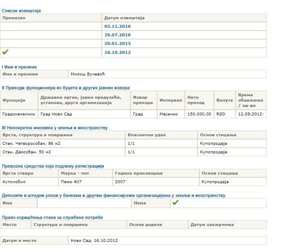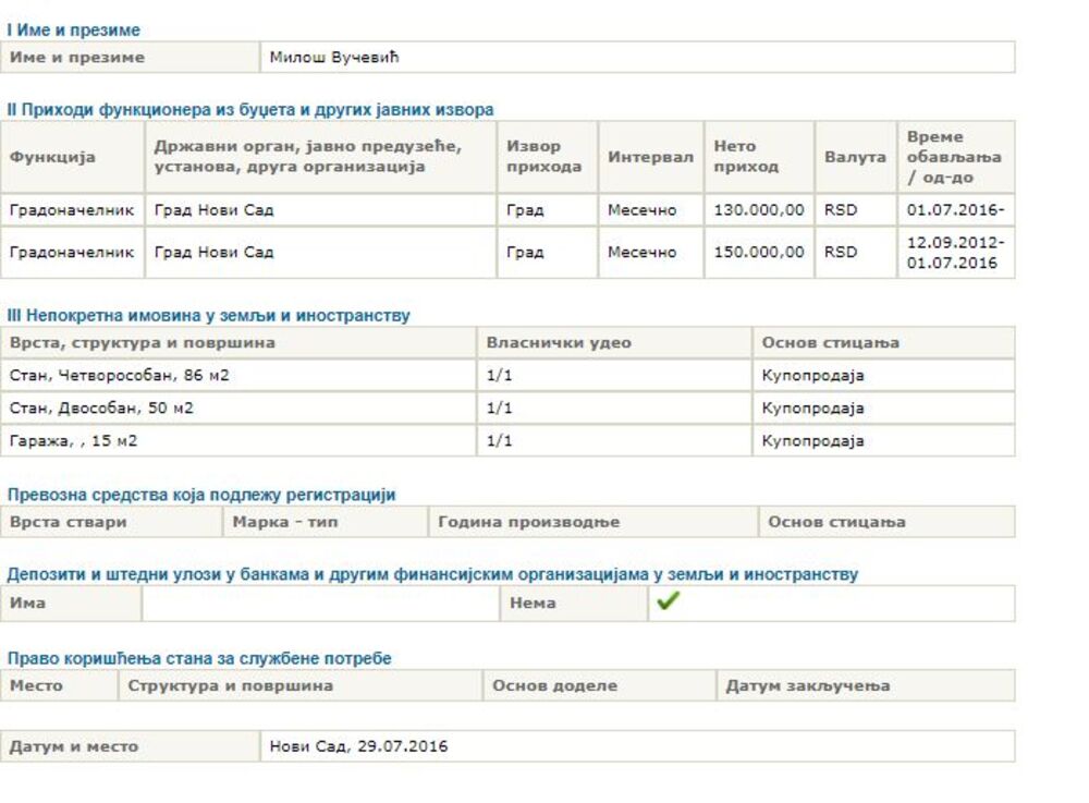 Onda je naredne godine 30. januara prijavio Agenciji za borbu protiv korupcije i garažu od 15 kvadrata. Od 29. jula 2016. godine, posle četiri godine opet je izabran za gradonačelnika, međutim, tada je Agenciji za borbu protiv korupcije prijavio smanjenu platu, koja od tog trenutka iznosi 130.000 dinara.
