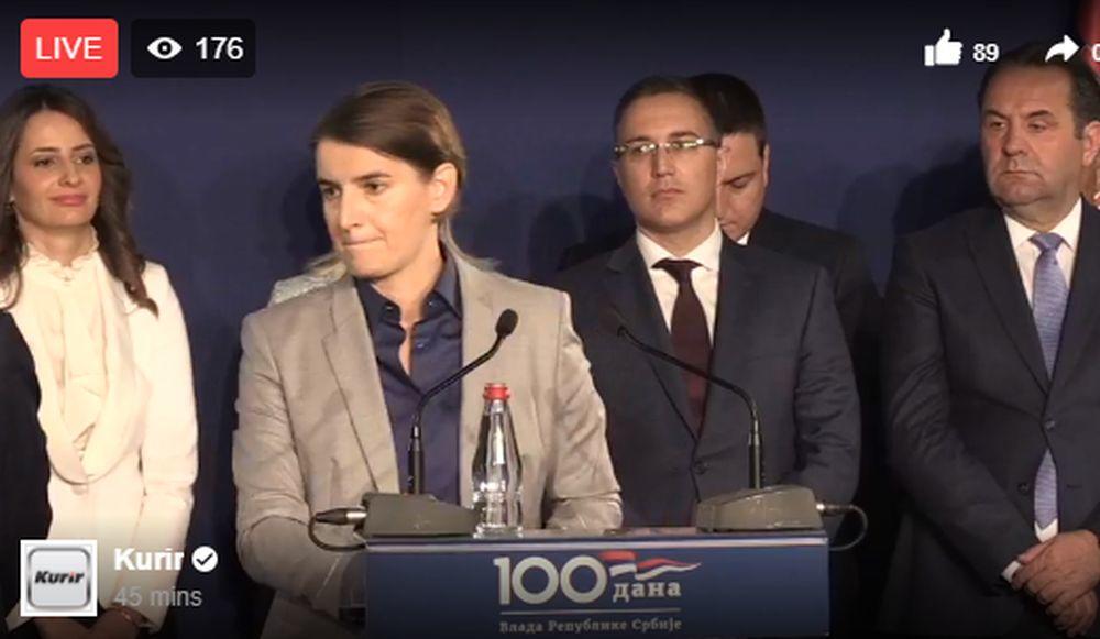 12.45 - Na početku svog obraćanja, premijerka Brnabić je istakla da je izuzetno ponosna na rezultate rada svog kabineta u prvih 100 dana.