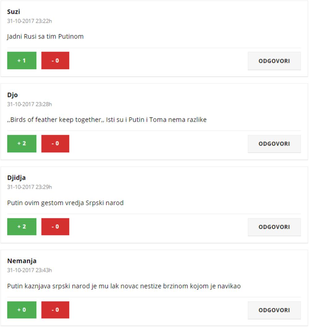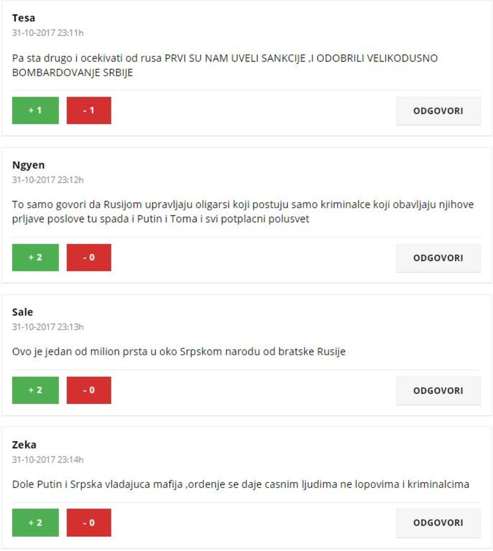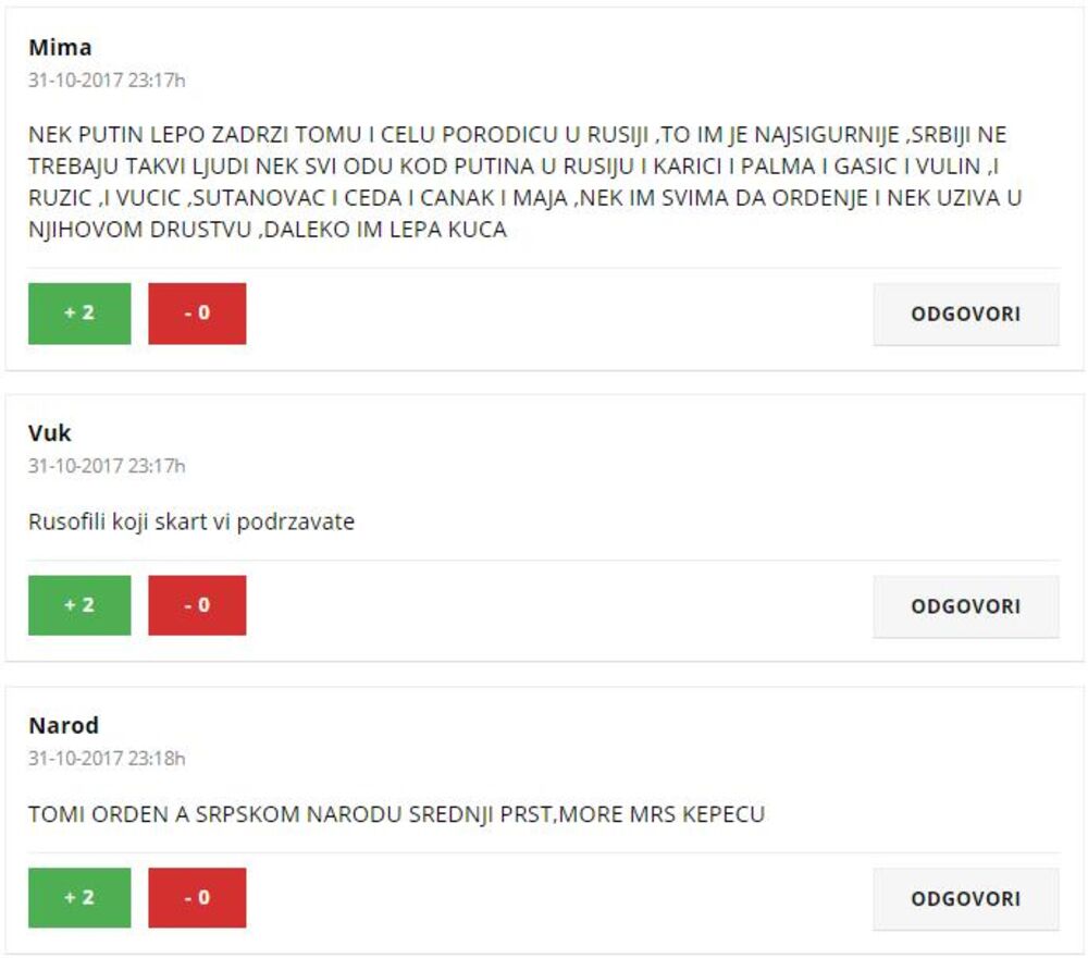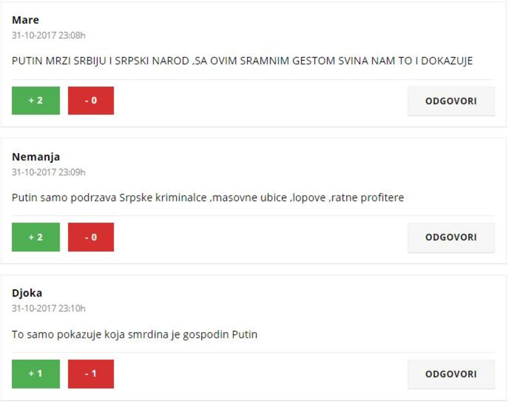 - Srpskom narodu srednji prst, more marš kepecu! - jedan je od uvredljivih komentara koji su napisani na račun Vladimira Putina