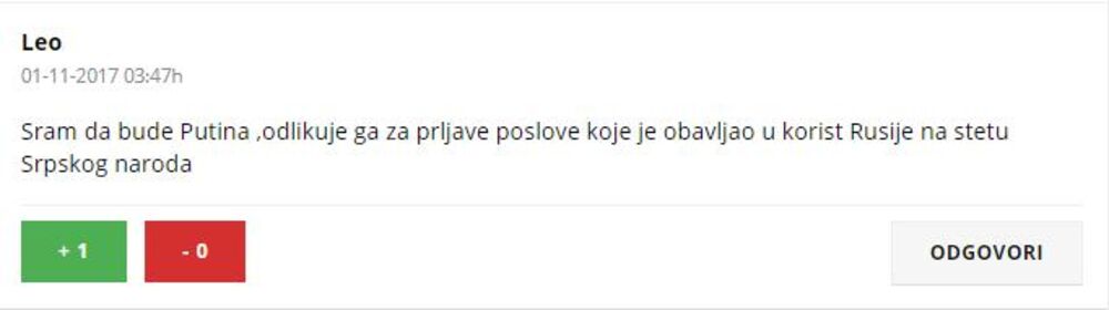 - Putin ovim gestom vređa Srbski narod - samo je jedan od komentara, a onda su se nizali i ostali...