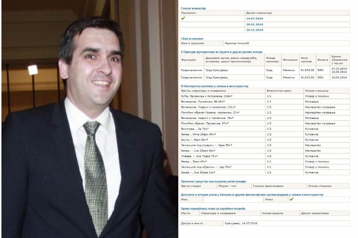 E, sad, veoma je čudno doći do sve ove imovine od mesečne plate od 91.633 dinara, koju Nikolić prima kao gradonačelnik Kragujevca.