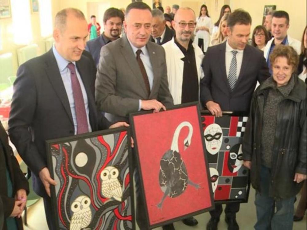 Pacijenti pshijatrijske Klinike „Dr Laza Lazarević“ su u svojim slikarskim radionicama za ovu priliku naslikali tri slike koje su poklonjene ministrima i gradonačelniku.