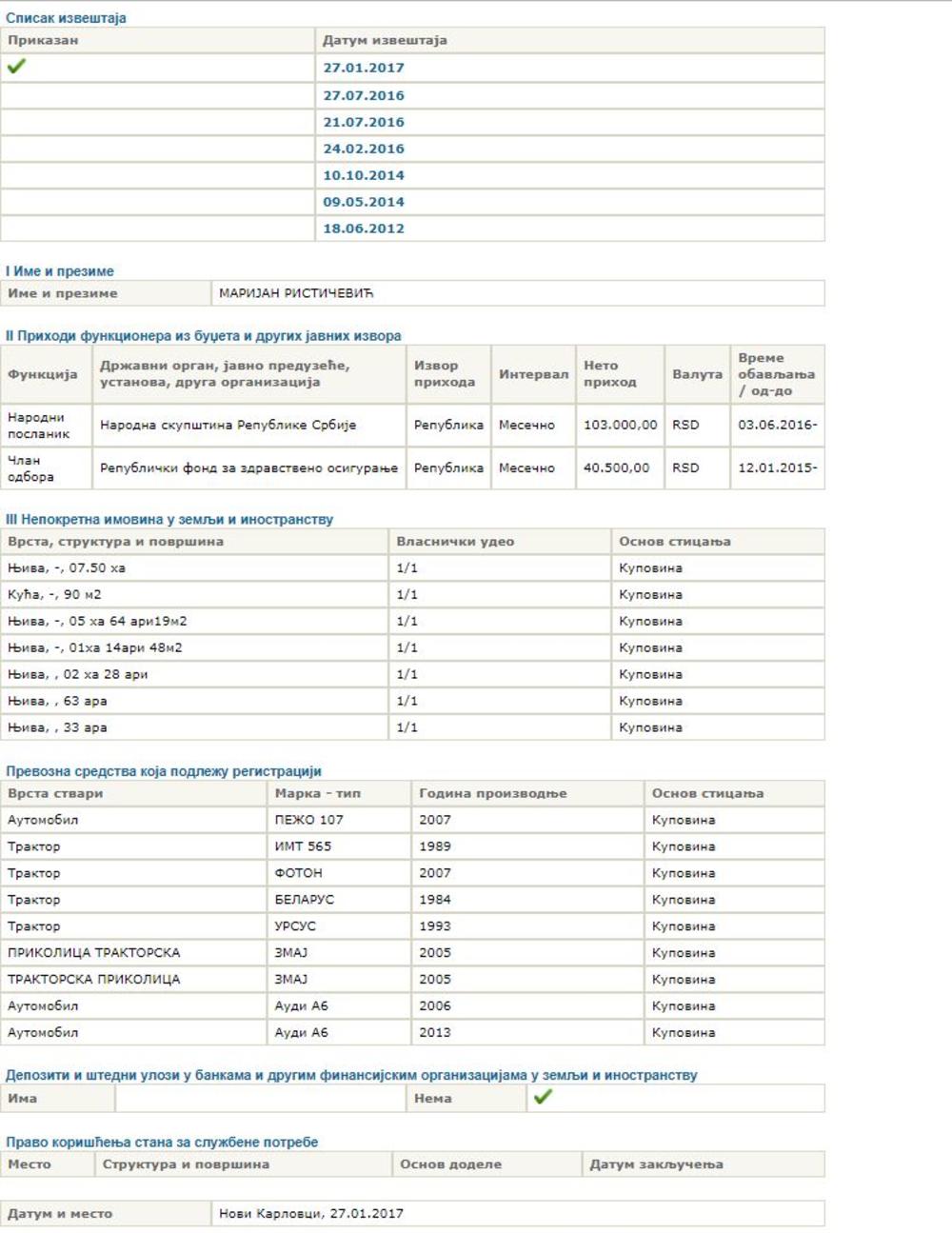 Postavlja se pitanje kako je Rističević od poslaničke plate 103.000 i još jedne koju dobija kao odbornik, a koja je 40.000 dinara uspeo da od 2012. godine kupi većinu imovine koju je prijavio?!