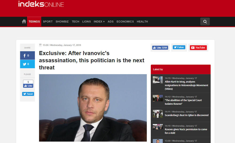 Samo dan posle ubistva Olivera Ivanovića, kosovski mediji objavili su je da je još jedan srpski političar u južnoj srpskoj pokrajini u životnoj opasnosti.
