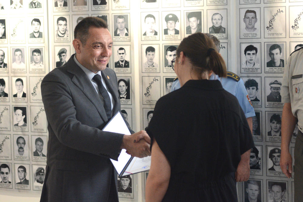 - To što su nosili uniformu, te 1999. godine nije nikakvo opravdanje da bude ubijeno 725 pripadnika vojske, koji su ovde, i 417 pripadnika Ministarstva unutrašnjih poslova, čija lica i oči ćemo moći da vidimo i zapamtimo na ovim zidovima, jesu nevine žrtve. Činjenica da su rođeni, da su živeli u svojoj zemlji, da su je branili u skladu sa odredbama međunarodnog prava, u skladu sa odredbama morala i naše istorije nije moglo nikome dati za pravo da ih ubije - rekao je Vulin.