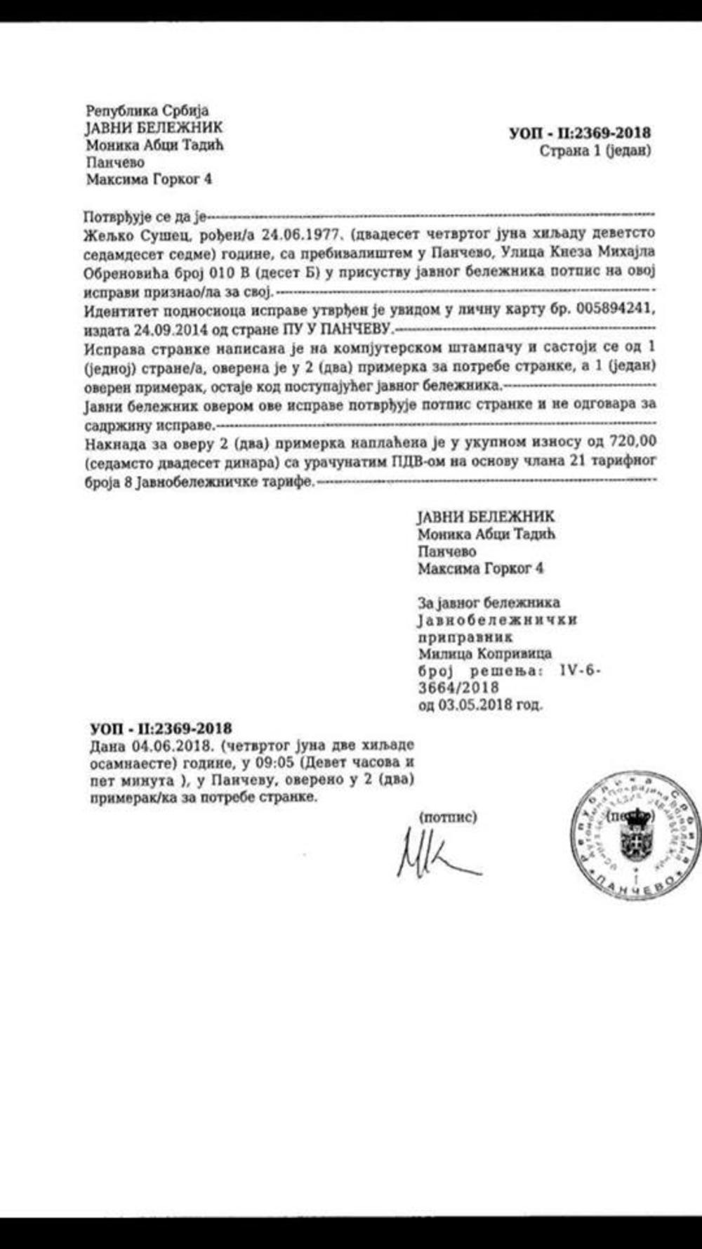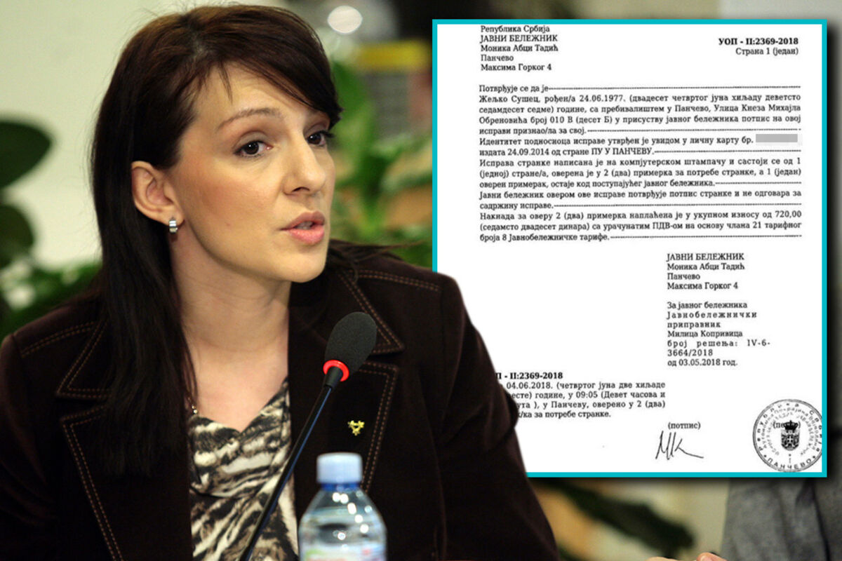 - Piše da je neopoziva, a i overena kod notara. To nameće zaključak da je neko hteo da bude baš, baš siguran da će Sušec nestati iz Skupštine što pre - rekla je Marinika za "Espreso".