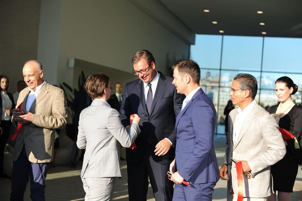 18.42 - Vrpcu su, u prisustvu predsednika Srbije Aleksandra Vučića, presekli premijerka Ana Brnabić, ministar u vladi Siniša Mali, gradonačelnik Beograda Zoran Radojičić, predsednik kompanija "Igl Hils" Muhamed Alabar, direktor kompanije "Beograd na vodi" Nikola Nedeljković.