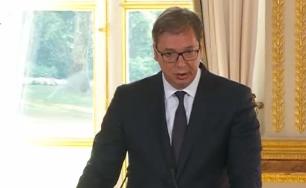 - Moramo da očuvamo mir i stabilnost, da tražimo rešenja za budućnost, a ne da gledamo u prošlost - kazao je Vučić, koji se izvinio što neće govoriti na francuskom.
