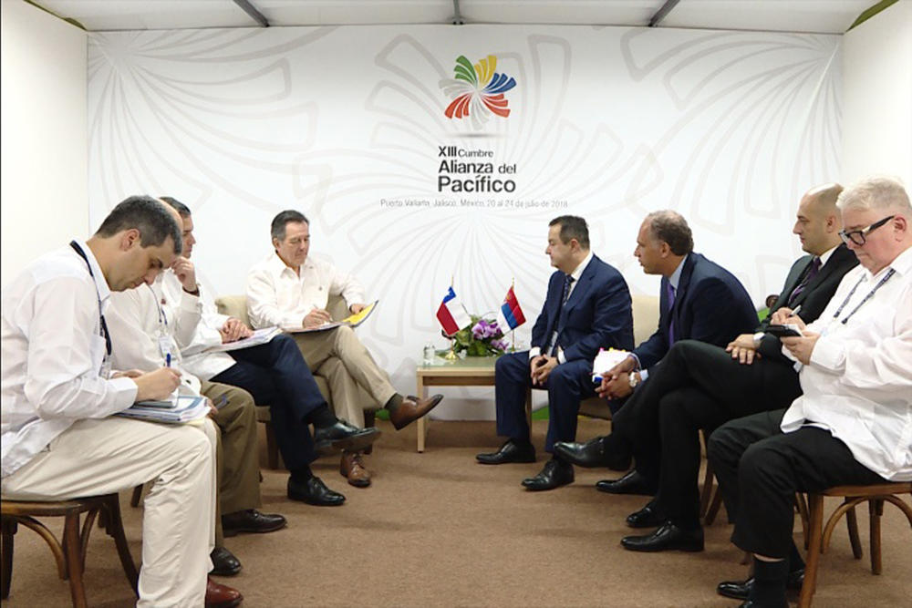 Na marginama 13. skupa na vrhu Pacifičke alijanse koji se održava u Meksiku, prvi potpredsednik vlade i ministar spoljnih poslova Srbije Ivica Dačić imao je radni sastanak sa ministrom inostranih poslova Čilea Robertom Ampuerom Espinosom.