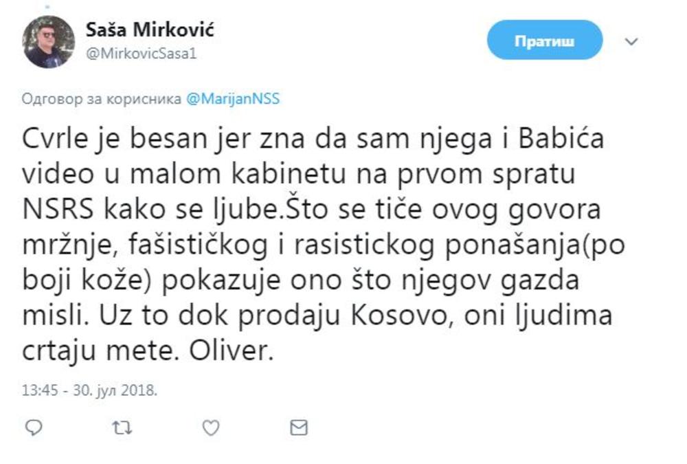 Nekada na listi Srpske napredne strane, a sada na ratnoj nozi, ova dvojica političara se prepucavaju kada god stignu, a sada je Marijan Rističević na društvenoj mreži Tviter „opleo“ po Mirkoviću.