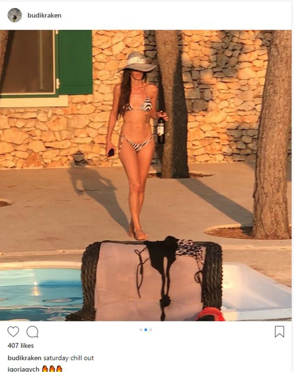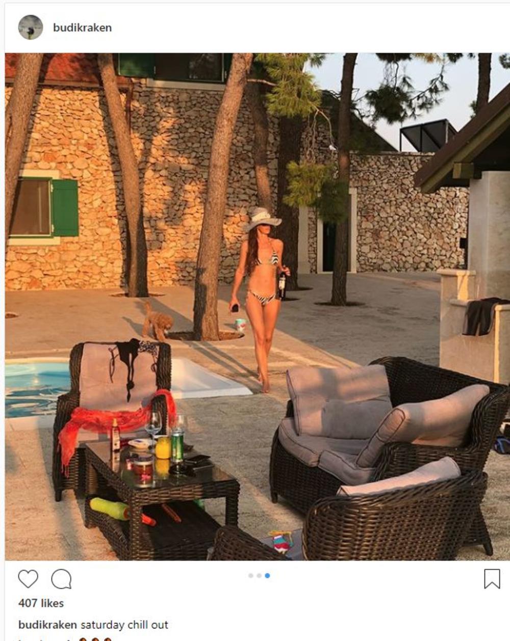 Na poslednjoj slici koju je Jovanović podelio na Instagramu, njegova supruga Jelena je u kupaćem kostimu i šeširom, sa flašom vina, u nekom lepom ambijentu, pored bazena.