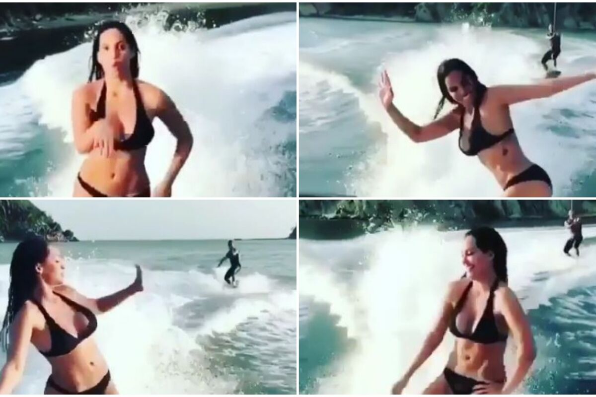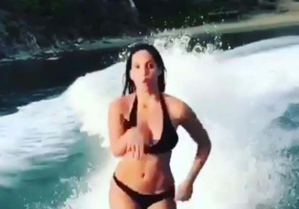 Ovog puta okačio je video u kojem je prezgodna crnka koja igra na jahti, za koju je zakačen surfer koji ih prati. Sve vreme videa ova atraktivna crnka izazovno igra na ovom brodu.