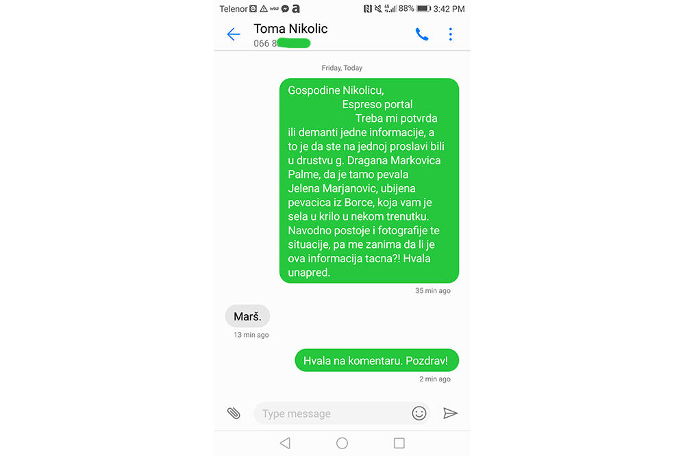 Nikolić je imao prilično neprijatnu poruku za nas, pa je na ovo pitanje odgovorio kratko i odsečno s: "Marš".